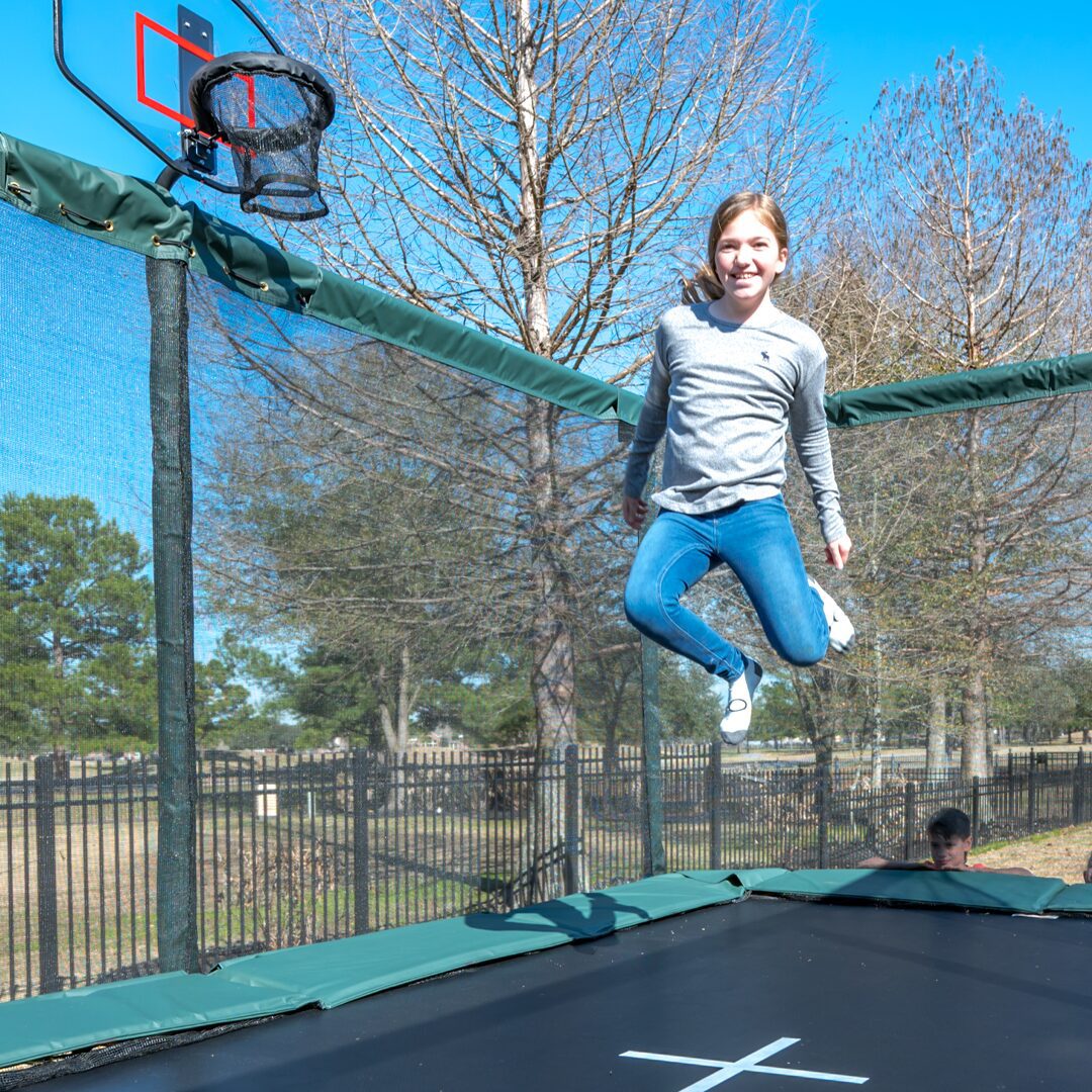 Zero Gravity trampolines feature a premium enclosure system designed to help keep jumpers protected without sacrificing performance. A durable polypropylene safety net, UV-resistant safety padding, and foam-padded enclosure poles work together to create a secure jumping environment that not only withstands the Texas head, but also gives families added confidence every time kids bounce.